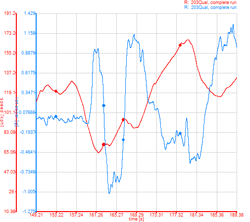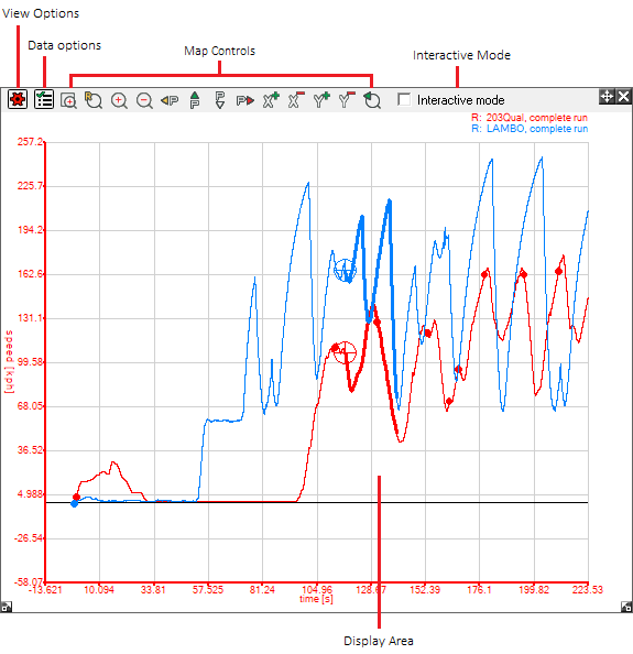 - Graph Legend - This details what part of the run the traces represent. They are also colour co-ordinated with the map traces.