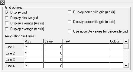 - Annotation lines - this adds named and coloured dash lines to indicate a constant x or y value (limit) in the graph.