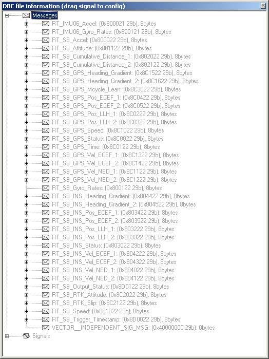 To set up a CAN channel with a signal drag the signal name from this window to the message in the main CAN configuration window