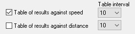 - Enable the “Table of results against speed” and sets the table interval to 10