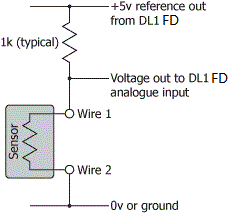 The DL1 FD requires a voltage input on it's sensor inputs that goes from a minimum of 0v to 12v maximum.