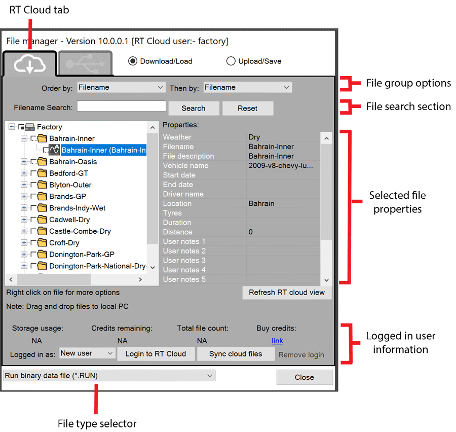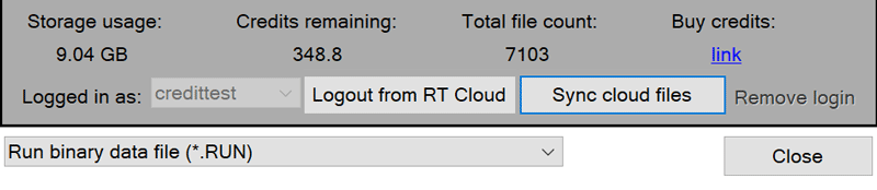 This allows loading and saving of files directly to the RT cloud. The RT cloud is effectively a storage drive that is on the internet. It allows the user a way to store files securely, and access them from any PC.