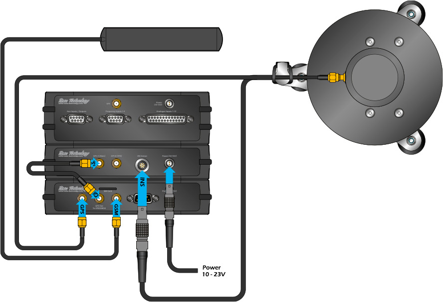 - Connect “GPS Out” of the GPS2 to “GPS 1” of the SPEEDBOX-INS.
