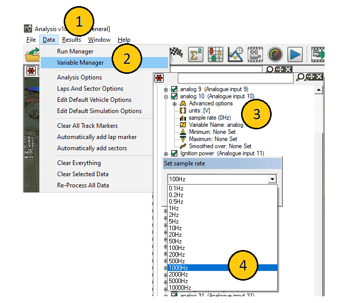 i. If the analogue channel has been mapped to different channel i.e analogue 1 mapped to auxiliary channel 1 then the mapped channel needs setting to 1000hz.