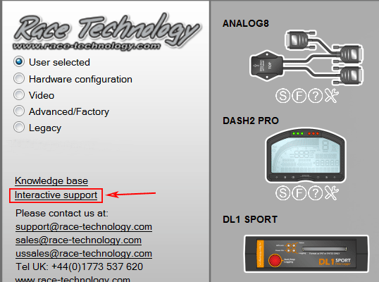 To start TeamViewer, click on the Interactive support link in the Race Technology v10 Program Launcher:'