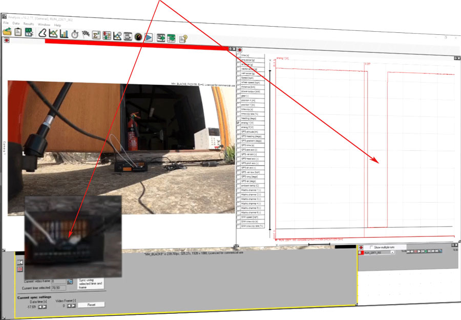 If higher accuracy is required the Race Technology software offers the ability to sync the data manually by selecting a video frame that matches a data point.