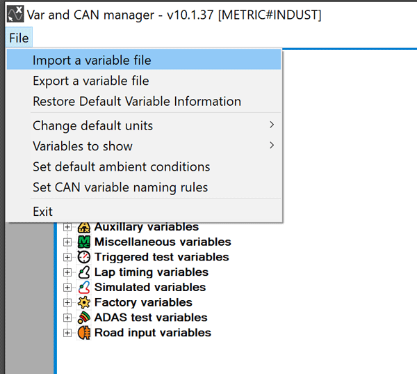 Select File> Import a variable file