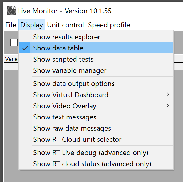 Live telemetry data