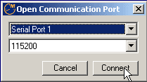 step 4: The following window will appear on screen. Select the serial port that you are using and press "Connect"