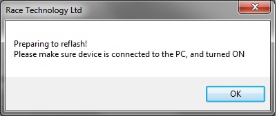 Step 6: You must now ensure the power to your DASH2 is on and the unit is connected to the computer. When you have done so, click "OK" to confirm.