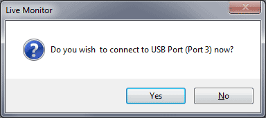 If you select Serial, USB, or Bluetooth, Live monitor will ask you whether you want to connect right now.