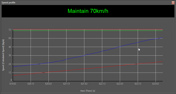 Live Monitor supports using the speed profiles (driving cycles). A Speed profile is a series of data points representing the speed of a vehicle versus time. Speed profiles help drivers to stay within speed bounds by displaying the speed ahead of time, so he/she can prepare to accelerate or brake when needed. They also help to assess the performance of vehicles in various ways, as for example fuel consumption and total emissions.