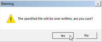 or you can overwrite an existing file by browsing to that file, left clicking on it, clicking on "Save" and clicking "Yes" in the overwrite confirmation pop-up dialog.