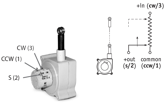 A high quality "string extension potentiometer" which senses the distance that the wire is pulled from the sensor body. Ideal for sensing steering angle. With relatively non-critical alignment requirements, compact size, and ease of installation wire rope actuated transducers are the linear measurement system of choice.