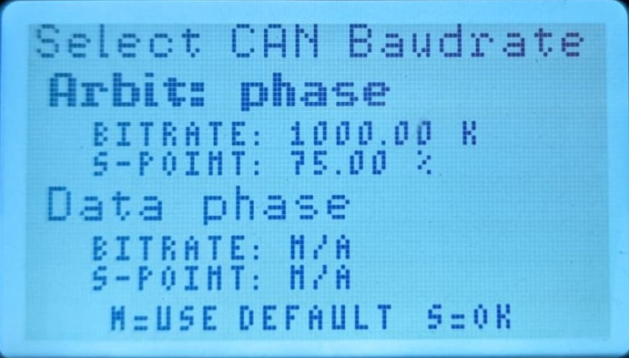If the baud rate is matched with the connected CAN bus, continuously increasing count will be seen on the first screen. Use UP and DOWN buttons to scroll through the variables.