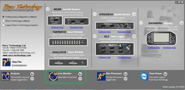 Click on Live Monitor. When the Live Monitor software starts it will detect the available serial ports, scripts, test results and configuration data. Select the options below and adjust the windows it fit the screen.