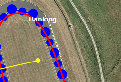 To add a feature to the track right click on the track to open it's context menu and click on the "Add corner here" menu item. (You can click on a large point, small point, or on the red line).