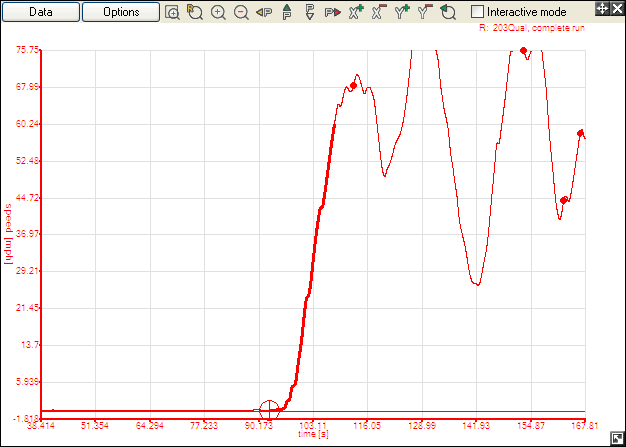 step 2: Once the graph has been opened, you may zoom in to the specific part of the run (in this case, the initial acceleration from 0-60) that you wish to analyse, by selecting the appropriate icon at the top of the graph,