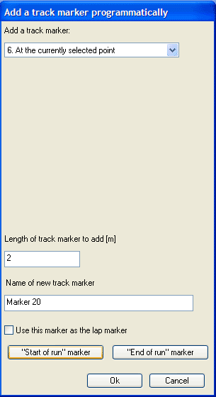 This will open up a window. Define how long you want the marker to be, according to your own preferences, and the click on the "start of run" marker button.