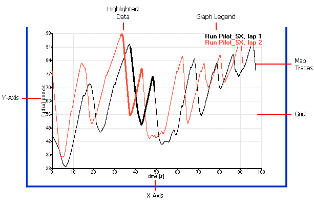 - Graph Legend - This details what part of the run the traces represent. They are also colour co-ordinated with the map traces.
