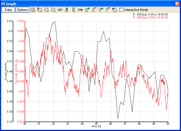While the XY graph is a powerful tool for analysis, as all the data is displayed on the same area, if you choose to have multiple X- and Y-axes, then you will still only get 5 traces, one for each set of X- and Y-axes. If you wish to compare data for up to 5 sets of data, with up to 5 variables against distance or time etc. it is recommended you use the Quick XY Graph.