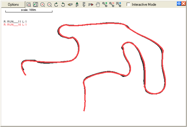The “start of run marker” is treated as a special case in the software and it’s sometimes useful to understand exactly how it works. When we place a normal track marker, then the software simply works out where the track marker crosses the track data and then this information is used for the timing etc. In the typical case where the vehicle is moving quite quickly then this works perfectly. For example if we assume a very typical case where the vehicle is moving at 80kph and there is 0.5m positional drift between 2 laps, then the resulting timing error will be about 2/100ths of a second. However at very low speeds then the error can be quite large. In the case of a standing start there is a big problem. If there is any drift in position between the 2 sessions then the timing errors could be huge – so big that the results would be meaningless.