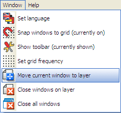 There are two ways of getting windows onto a layer. You can either select the layer you want the window on, and open the window on that layer, or you can move a window from the currently layer to another. You access the layer controls through the > Window menu: