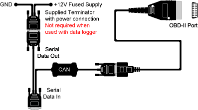 When wiring in the CAN OBD adapter, it can be treating exactly the same as a “normal” ECU adapter, except that it has an extra cable that goes from the ECU adapter to the standard OBD connector on the car, as shown below: