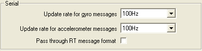 In the DL1/2 configuration, ensure that the internal accelerometers are turned off for both storage to the memory card and to the serial port. Enable decoding of serial messages and logging of incoming serial data to the memory card.