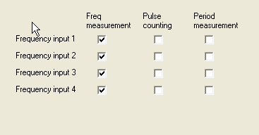 8. On the frequency inputs tab, please tick all 4 boxes for “Freq measurement” and leave the boxes for “pulse counting” and “period measurement” unticked.