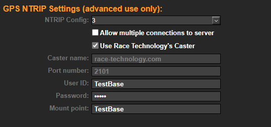Alternatively, a Race Technology Base station can be used to provide corrections. Configuration details for this can be found on this link.