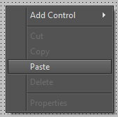 - Right click within the design area to open the context menu, and use the “Paste” command