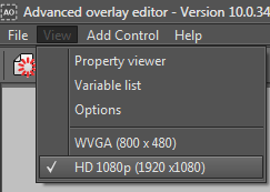 2. Change the Resolution to “HD 1080p” to start design a video overlay by using the menu command “View -> HD 1080p (1920x1080)”