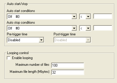 When the autostart conditions are met it will come out of pretrigger mode and start logging normally. Logging will continue until either a fixed file size is obtained or the autostop conditions are met. The unit will then start logging again in the pre-trigger mode.