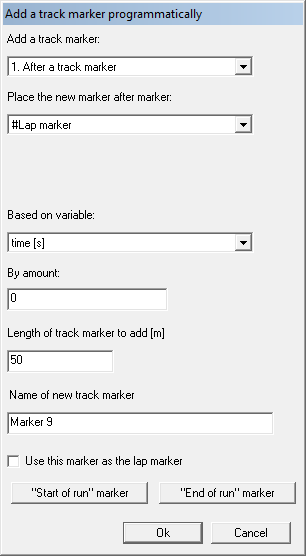 When you let go of the mouse button, you will be prompted with a dialog, asking you to name your track marker, and whether you want to use it as the lap marker. The first track marker you add doesn't have to be the Lap Marker, this can always be changed later.