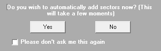Whilst the lap markers and sectors can be defined manually to the exact users requirements, it can take a few minutes, which may not be ideal for track side analysis where you just want results as quickly as possible. You can choose to add a lap marker and sector markers automatically by selecting "Yes" to the following two dialog boxes which appears when you load a RUN file to analysis software.