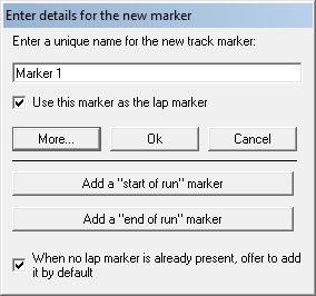 When you are adding the special “Start of Run” or “End of Run” markers it is either possible to type the name in directly, or you can click on the more button and then use the additional buttons that appear. The only difference is that by using these additional buttons, it avoids any possiblility of typing errors in the names of the markers and it’s faster, functionally it makes no difference when compared to simply typing the name in.