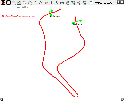 However this must not be used in the “open circuit” case, instead the start and end points need to be defined. This is done with the special track markers called “Start of run” and “End of run”, adding these you get something like: