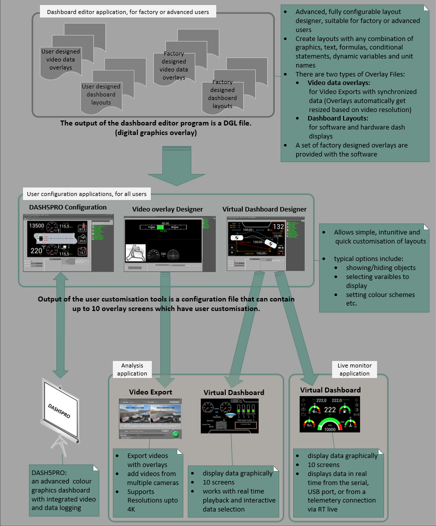 The Advanced Overlay Editor is a fully configurable application for designing data overlays and dashboard layouts. The software is suitable for factory or advanced users to create overlays with any combination of graphics, text, formulas, conditional statements, dynamic variable and unit names.