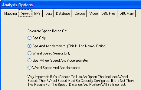 Note that distance is calculated by analysis based on speed, so the options that you choose for speed with also directly affect distance. Speed and distance are also used on the position calculations, so again any problems in speed will impact the track mapping.