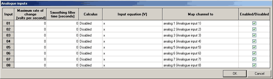 Open the DASH2 PRO configuration software and click on the Analogue Inputs tab.