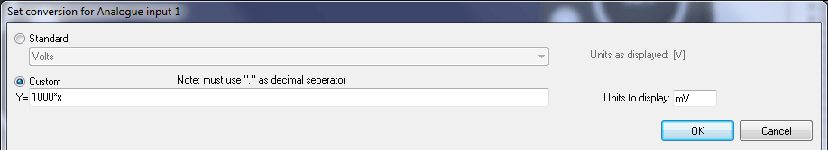 e.g. If you wish to convert a voltage value to millivolts, you can write the following equation.
