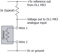 Please note that it is the installer responsibility to choose the correct value of “pull up” resistor when using 1 or 2 wire sensors with Race Technology products. For a particular sensor type there is no “correct” value of resistor however it must be selected to be “somewhere near” to ensure: