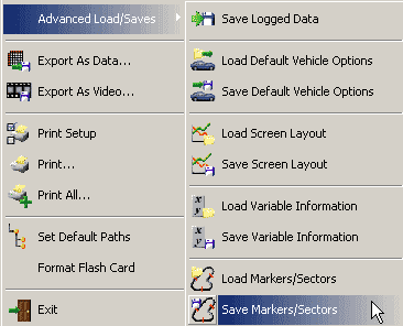 step 2: Enter the "File" menu in the top, left hand corner of the screen. Now go into the "Advanced Load/Saves" sub-menu and select "Save Markers/Sectors".