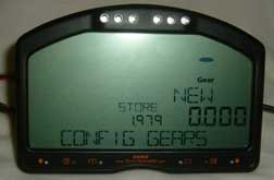 step 4: After setting the number of gears, the display will change. It will now show three things - the gear that is currently being edited, “STORE” (which is the stored reading for the current gear), and “NEW” (which is the current reading on the analogue input).