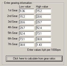 step 2: This will bring up another window. Enter your gear ratios in the boxes provided.
