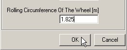 step 4: Finally, enter the rolling circumference of the wheel (the distance that is travelled every time the wheel makes one revolution), and press "OK"