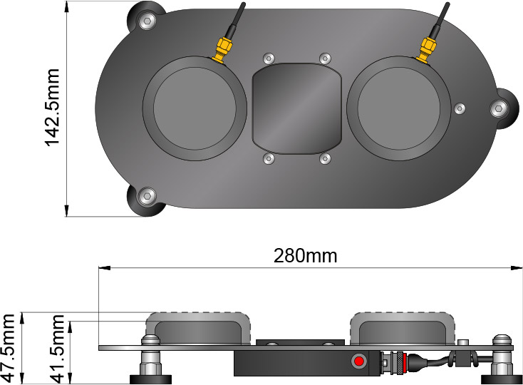 The Compact Dual Antenna has two options for the antennas, the larger dual frequency GNSS antennas, and the smaller GPS only antennas. The choice of antennas is dependent on the application.