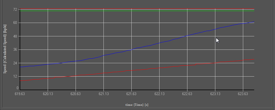 - Graph control displays speed profile data (minimum, maximum and target values as well as the actual speed as lines.