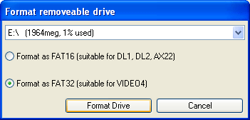 - Because the DL1/AX22 write data using the FAT16 file format only cards between 32MB-2GB can be used, cards outside of the range might not be recognised or may cause unexpected behaviour.